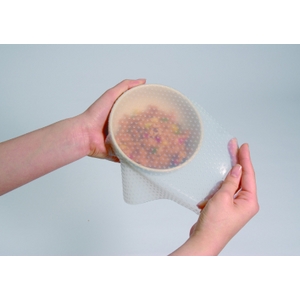 使用サイズ:小サイズ:直径12cm以下の食器に対応、中サイズ:直径12cm~25cmの食器に対応、大サイズ:直径25㎝以上の食器に対応 縦横約2倍以上やわらかく伸びます。