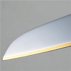 ゴールドファインエッジ包丁は、外科用メスにも使われている高品質マルテンサイトステンレスの刃先の片面だけにチタンをコーティングすることにより、刃こぼれや摩擦を防ぐ“研がずに使える”革命的な逸品です。 グリップは雑菌などが繁殖しにくいポリプロピレン製で滑りにくく、大きい刃には力が入るように、小さな刃にはデリケートなタッチが得られるよう使いやすくデザインされています。